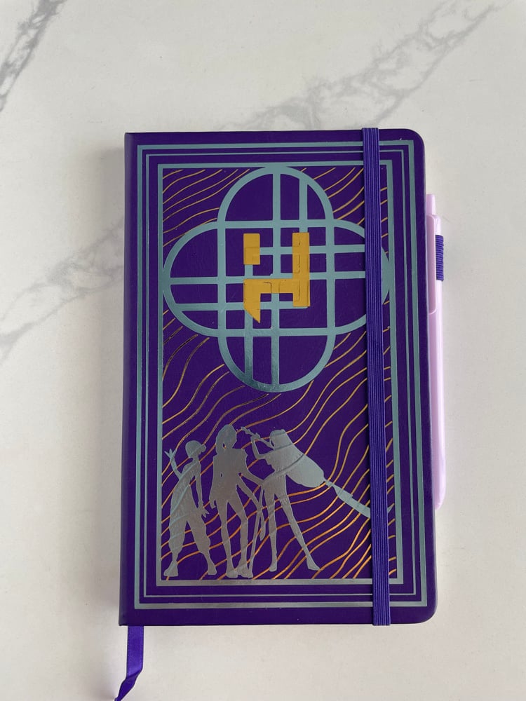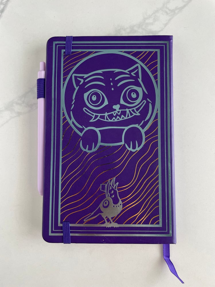 Hardcover journal with 128 lined pages for notetaking, journaling, whatever your heart desires. Cover is faux leather with foil design and the interior includes inner pocket and a ribbon bookmark. Comes with a black ink pen.